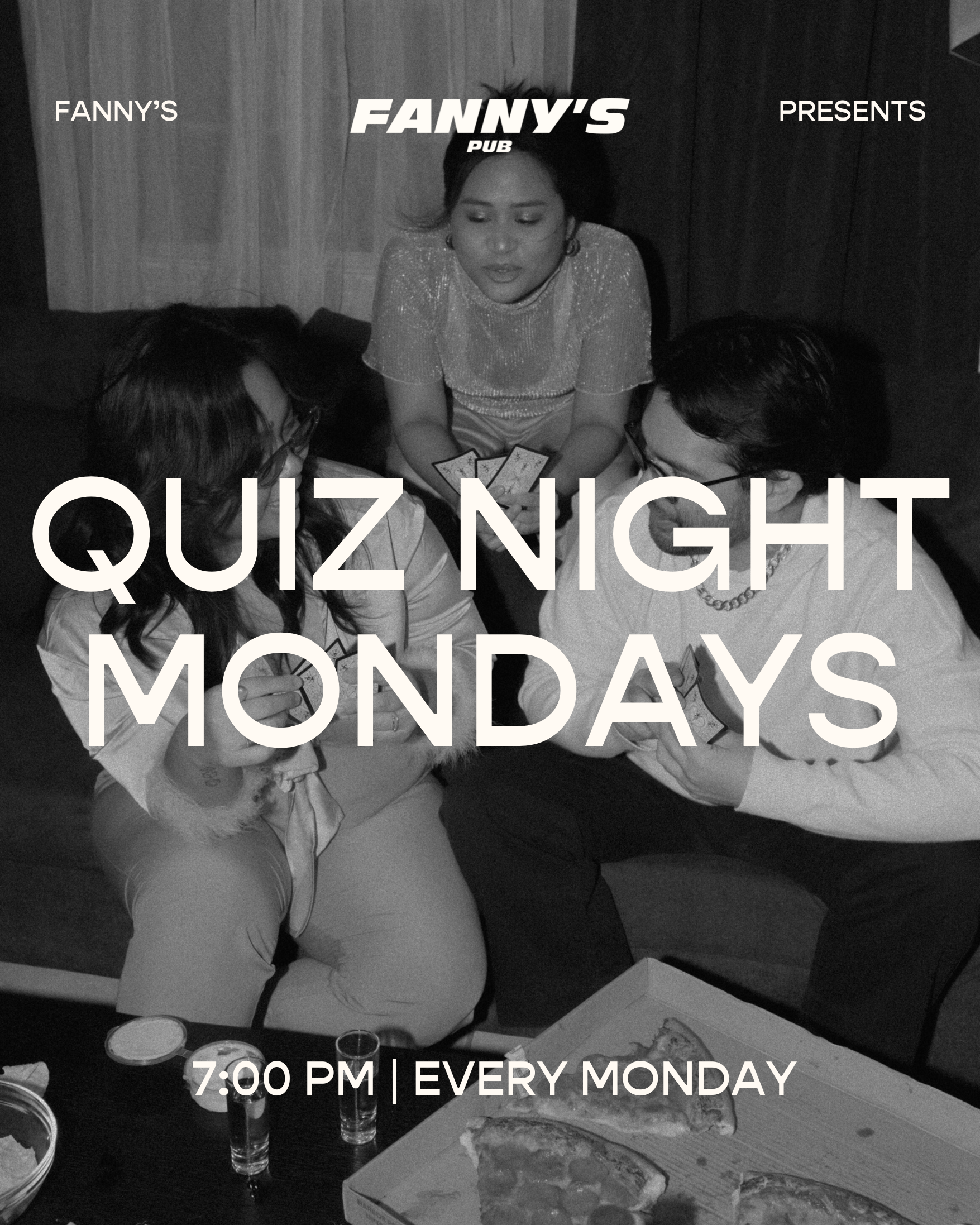 Fanny’s Pub Quiz runs every Monday from 7pm, offering a relaxed and well-paced quiz night. Enjoy fun rounds alongside quality drinks and wood-fired pizza in a casual, welcoming setting. Designed to be social without the chaos, it’s an easy Monday night option for teams of four or more, just book online and settle in for the evening.